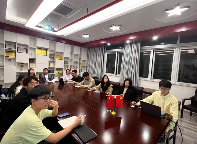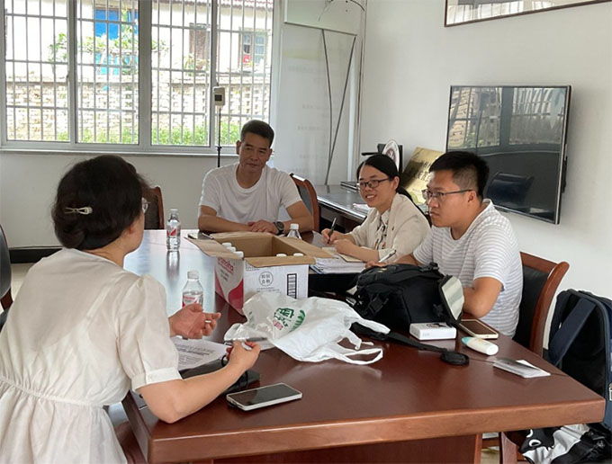 图为团队在浙江调研时向村委负责人了解何村绿色生态价值实现的基本情况